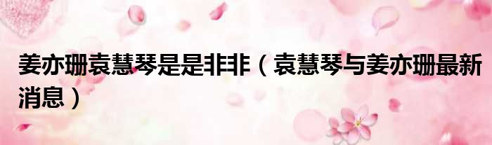 姜亦珊袁慧琴是是非非(袁慧琴与姜亦珊最新消息)