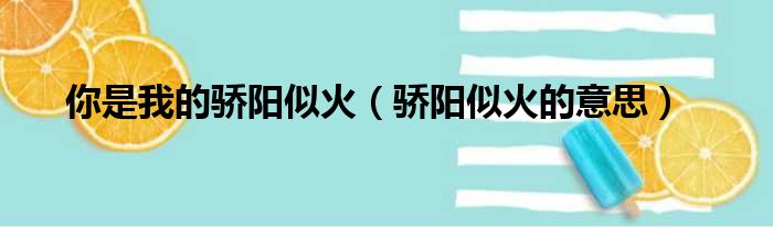 导读 大家好,今天小六子来为大家解答以下的问题,关于你是我的骄阳似火,骄阳似火的意思这个很多人还不知道,现在让我们一起来看看吧!1、强烈的