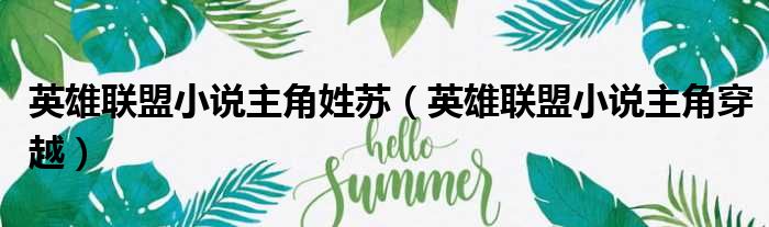 导读 大家好,今天小六子来为大家解答以下的问题,关于英雄联盟小说主角姓苏,英雄联盟小说主角穿越这个很多人还不知道,现在让我们一起来看看吧