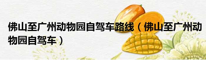 佛山至广州动物园自驾车路线(佛山至广州动物园自驾车)