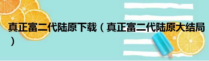 导读 大家好,今天小六子来为大家解答以下的问题,关于真正富二代陆原下载,真正富二代陆原大结局这个很多人还不知道,现在让我们一起来看看吧!1