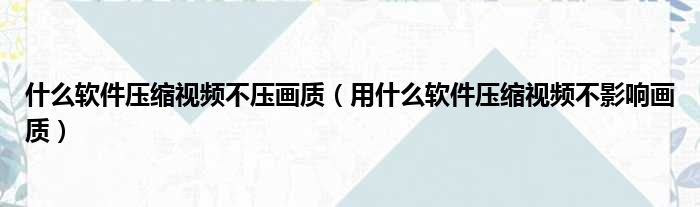 什么软件压缩视频不压画质(用什么软件压缩视频不影响画质)