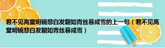 君不见高堂明镜悲白发朝如青丝暮成雪的上一句(君不见高堂明镜悲白发朝如青丝暮成雪)