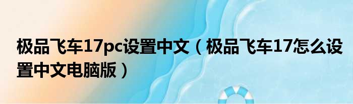 极品飞车17pc设置中文(极品飞车17怎么设置中文电脑版)