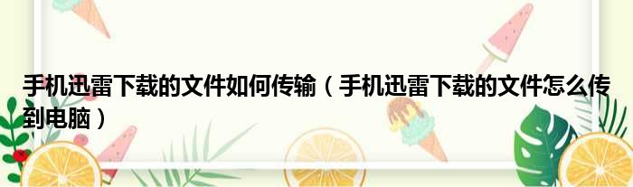 手机迅雷下载的文件如何传输(手机迅雷下载的文件怎么传到电脑)