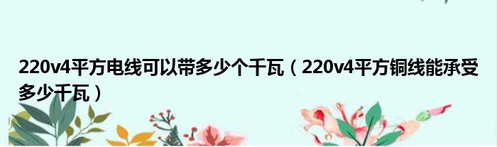220v4平方电线可以带多少个千瓦(220v4平方铜线能承受多少千瓦)