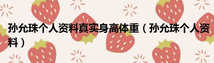 导读 大家好,今天小六子来为大家解答以下的问题,关于孙允珠个人资料真实身高体重,孙允珠个人资料这个很多人还不知道,现在让我们一起来看看吧