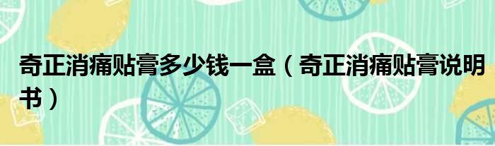 奇正消痛贴膏多少钱一盒(奇正消痛贴膏说明书)