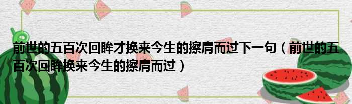 前世的五百次回眸才换来今生的擦肩而过下一句(前世的五百次回眸换来今生的擦肩而过)