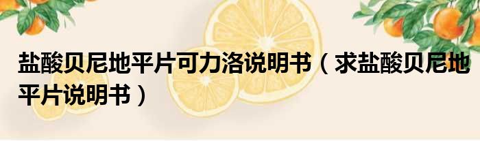 盐酸贝尼地平片可力洛说明书(求盐酸贝尼地平片说明书)