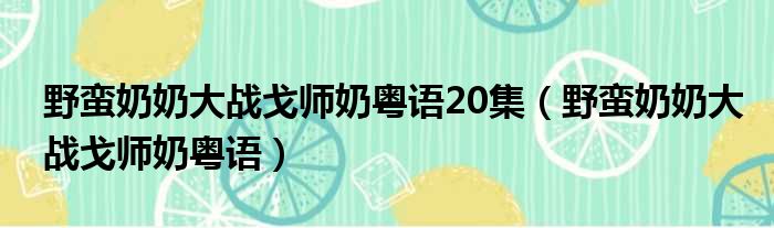 野蛮奶奶大战戈师奶粤语20集(野蛮奶奶大战戈师奶粤语)