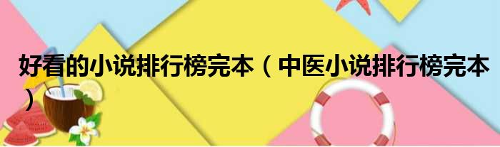 导读 大家好,今天小六子来为大家解答以下的问题,关于好看的小说排行榜完本,中医小说排行榜完本这个很多人还不知道,现在让我们一起来看看吧!1