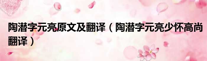导读 大家好,今天小六子来为大家解答以下的问题,关于陶潜字元亮原文及翻译,陶潜字元亮少怀高尚翻译这个很多人还不知道,现在让我们一起来看看