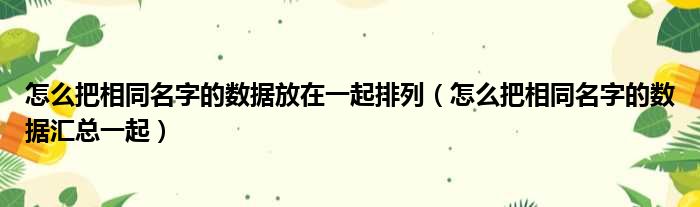 导读 大家好,今天小六子来为大家解答以下的问题,关于怎么把相同名字的数据放在一起排列,怎么把相同名字的数据汇总一起这个很多人还不知道,现
