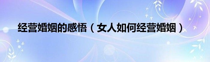 大家好,今天小六子来为大家解答以下的问题,关于经营婚姻的感悟,女人如何经营婚姻这个很多人还不知道,现在让我们一起来看看吧!
