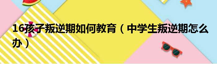 导读 大家好,今天小六子来为大家解答以下的问题,关于16孩子叛逆期如何教育,中学生叛逆期怎么办这个很多人还不知道,现在让我们一起来看看吧!1