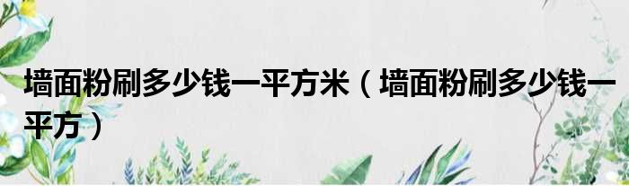 墙面粉刷多少钱一平方米(墙面粉刷多少钱一平方)