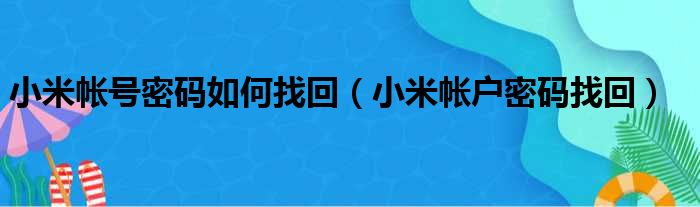 小米帐号密码如何找回(小米帐户密码找回)