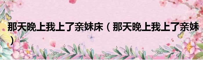 那天晚上我上了亲妹床(那天晚上我上了亲妹)