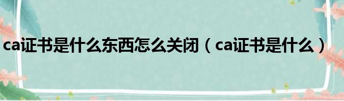 ca证书是什么东西怎么关闭(ca证书是什么)