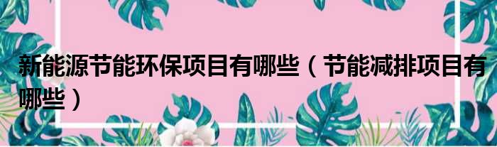 新能源节能环保项目有哪些(节能减排项目有哪些)