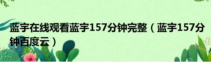 导读 大家好,今天小六子来为大家解答以下的问题,关于蓝宇在线观看蓝宇157分钟完整,蓝宇157分钟百度云这个很多人还不知道,现在让我们一起来看