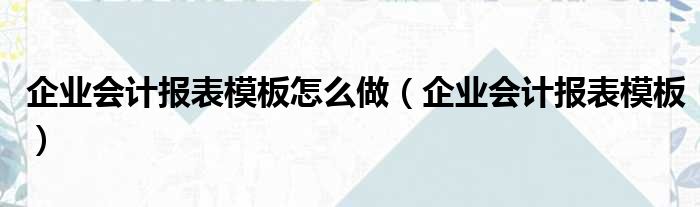 导读 大家好,今天小六子来为大家解答以下的问题,关于企业会计报表模板怎么做,企业会计报表模板这个很多人还不知道,现在让我们一起来看看吧!1