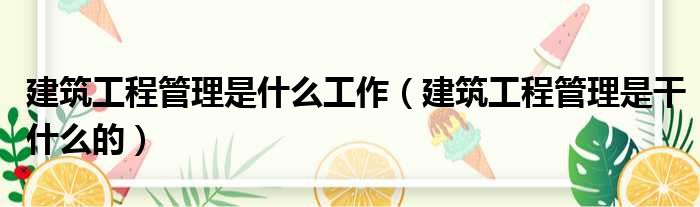 建筑工程管理是什么工作(建筑工程管理是干什么的)