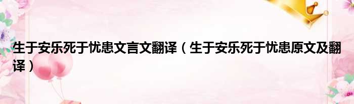 导读 大家好,今天小六子来为大家解答以下的问题,关于生于安乐死于忧患文言文翻译,生于安乐死于忧患原文及翻译这个很多人还不知道,现在让我们