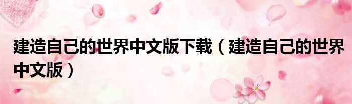 建造自己的世界中文版下载(建造自己的世界中文版)