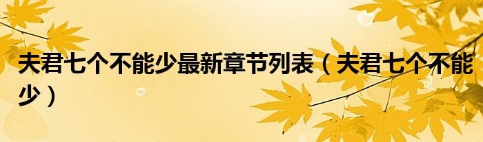导读 大家好,今天小六子来为大家解答以下的问题,关于夫君七个不能少最新章节列表,夫君七个不能少这个很多人还不知道,现在让我们一起来看看吧