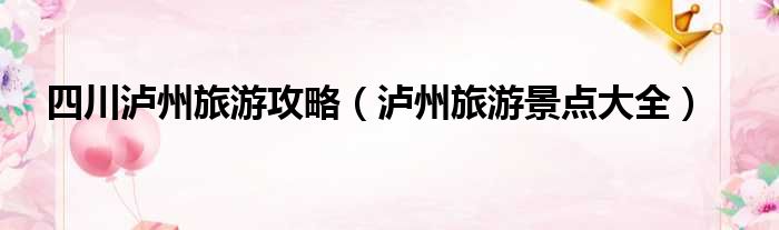 导读 大家好,今天小六子来为大家解答以下的问题,关于四川泸州旅游攻略,泸州旅游景点大全这个很多人还不知道,现在让我们一起来看看吧!1、全市