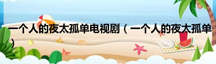 导读 大家好,今天小六子来为大家解答以下的问题,关于一个人的夜太孤单电视剧,一个人的夜太孤单这个很多人还不知道,现在让我们一起来看看吧!1