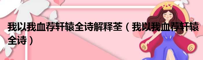 导读 大家好,今天小六子来为大家解答以下的问题,关于我以我血荐轩辕全诗解释荃,我以我血荐轩辕全诗这个很多人还不知道,现在让我们一起来看看