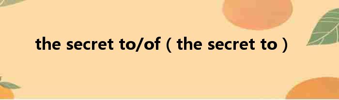 导读 大家好,今天小六子来为大家解答以下的问题,关于the secret to of,the secret to这个很多人还不知道,现在让我们一起来看看吧!1、正