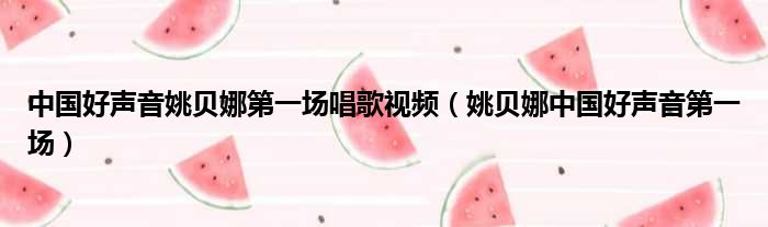 导读 大家好,今天小六子来为大家解答以下的问题,关于中国好声音姚贝娜第一场唱歌视频,姚贝娜中国好声音第一场这个很多人还不知道,现在让我们