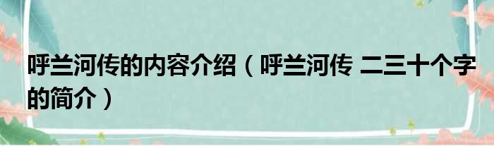 导读 大家好,今天小六子来为大家解答以下的问题,关于呼兰河传的内容介绍,呼兰河传 二三十个字的简介这个很多人还不知道,现在让我们一起来看