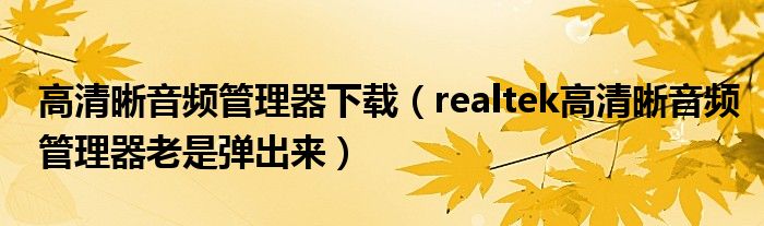 高清晰音频管理器下载(realtek高清晰音频管理器老是弹出来)