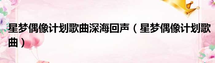 大家好,今天小六子来为大家解答以下的问题,关于星梦偶像计划歌曲深海回声,星梦偶像计划歌曲这个很多人还不知道,现在让我们一起来看看吧!