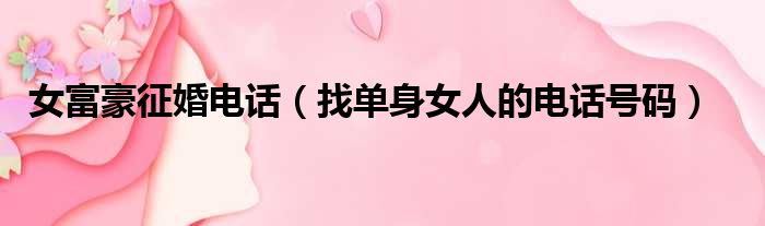 大家好,今天小六子来为大家解答以下的问题,关于女富豪征婚电话,找单身女人的电话号码这个很多人还不知道,现在让我们一起来看看吧!