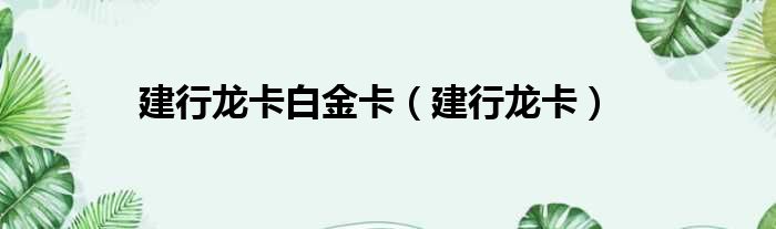 大家好,今天小六子来为大家解答以下的问题,关于建行龙卡白金卡,建行龙卡这个很多人还不知道,现在让我们一起来看看吧!