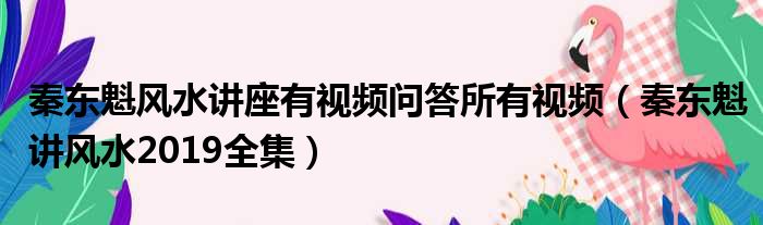 导读 大家好,今天小六子来为大家解答以下的问题,关于秦东魁风水讲座有视频问答所有视频,秦东魁讲风水2019全集这个很多人还不知道,现在让我们