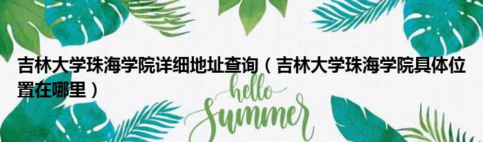 导读 大家好,今天小六子来为大家解答以下的问题,关于吉林大学珠海学院详细地址查询,吉林大学珠海学院具体位置在哪里这个很多人还不知道,现在