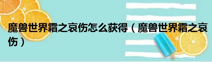 魔兽世界霜之哀伤怎么获得(魔兽世界霜之哀伤)