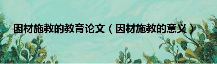 大家好,今天小六子来为大家解答以下的问题,关于因材施教的教育论文,因材施教的意义这个很多人还不知道,现在让我们一起来看看吧!