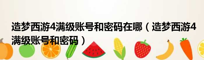 造梦西游4满级账号和密码在哪(造梦西游4满级账号和密码)
