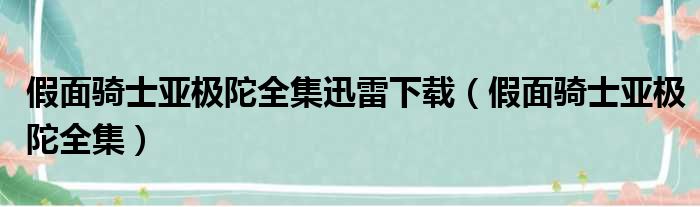 假面骑士亚极陀全集迅雷下载(假面骑士亚极陀全集)