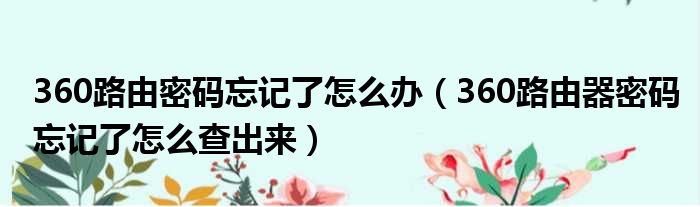 360路由密码忘记了怎么办(360路由器密码忘记了怎么查出来)