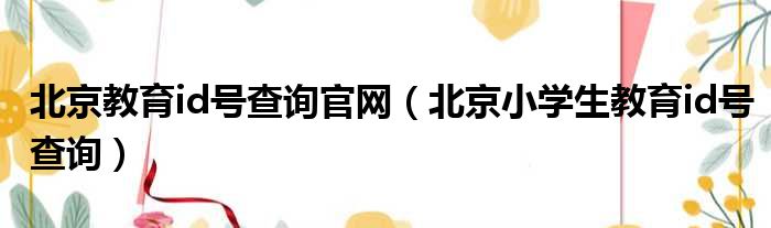 导读 大家好,今天小六子来为大家解答以下的问题,关于北京教育id号查询官网,北京小学生教育id号查询这个很多人还不知道,现在让我们一起来看看