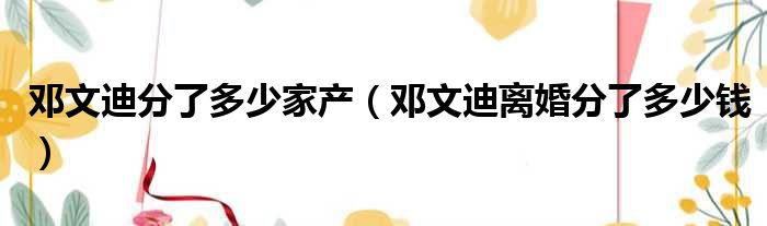 邓文迪分了多少家产(邓文迪离婚分了多少钱)